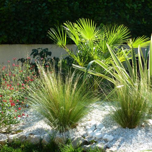 La palette végétale proposée se compose de végétaux méditerranéens, adaptés à notre climat et produits pour la grande majorité localement à la pépinière Quissac de St Etiennes d'Escattes